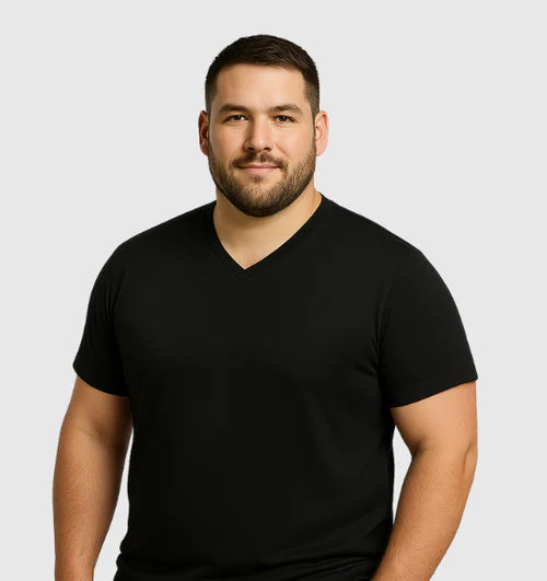 Discover our premium fitted V-neck t-shirt — the perfect blend of comfort and style, designed with a contemporary, athletic cut that enhances your silhouette.